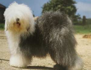 Desbordante pelaje en cualquier de los tonos de gris o de azul, con manchas blancas y más espeso que largo. Entrepelo impermeable. Ojos separados, que deben ser azules u oscuros. Orejas tan pequeñas que se pierden entre el pelo que recubre la cabeza. Pies redondos y pequeños, con almohadillas gruesas y duras. La cola suele amputarse, dejándola muy corta. Línea dorsal ascendente desde la cruz hasta la rabadilla, subrayada por su característica ambladura.
