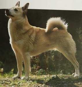 Es uno de los primeros perros de caza de los nórdicos, originado tal vez hace 2000 años. Su nombre significa “perro de granja”, y se utilizó como guardián de las granjas y ovejero. Aun desconfía de las personas que no conoce.