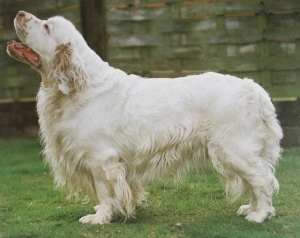 El Clumber es el más corpulento de los Spaniel. Criado en Francia por el duque de Noailles, que lo utilizaba como ojeador y cobrador, fue llevado por el mismo Clumber Pack, cerca de Newcastle, Inglaterra, de donde procede su nombre. Aunque todos los Spaniels cazadores se llamaron Field Spaniel en su día, actualmente esta denominación incluye solo a los de más talla.