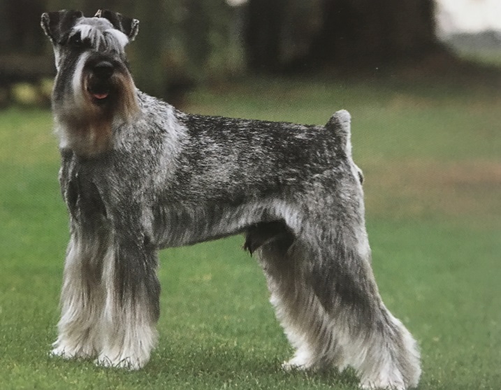 La palabra Schnauzer significa “morro”. Efectivamente, el rasgo más llamativo de este perro es su morro, subrayado además por una larga barba de pelo duro como el alambre, que se ha convertido en su principal característica. Cuando participan en concursos de belleza y exposiciones, la forma de su morro se acentúa recortando estratégicamente la barba. Son perros poderosos que tardan mucho en madurar. Su sentido de la responsabilidad y del deber lo hacen particularmente idóneo como perro policía y del ejército. Es paciente y fiable, y puede recorrer unos 16 km caminando sin descansar y sin apenas esfuerzo.
